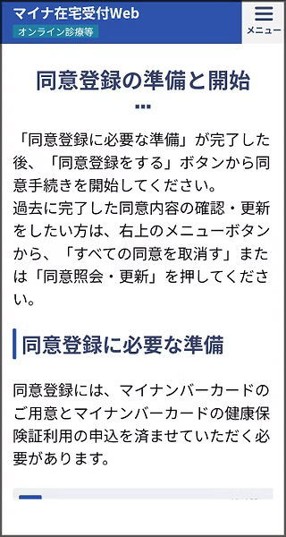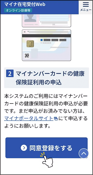 1マイナ在宅Webを表示、スクロールして同意登録へ。