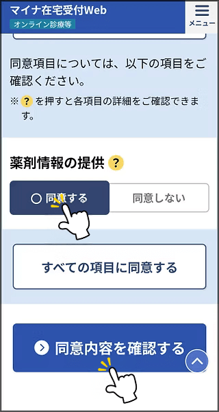 4各項目を同意してください。同意内容を確認するをタップし次の画面に進みます。