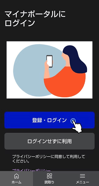 7マイナポータルにログインしてください。登録・ログインをタップ。