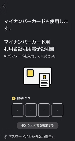 4桁のマイナカードのパスワードを入力してください。